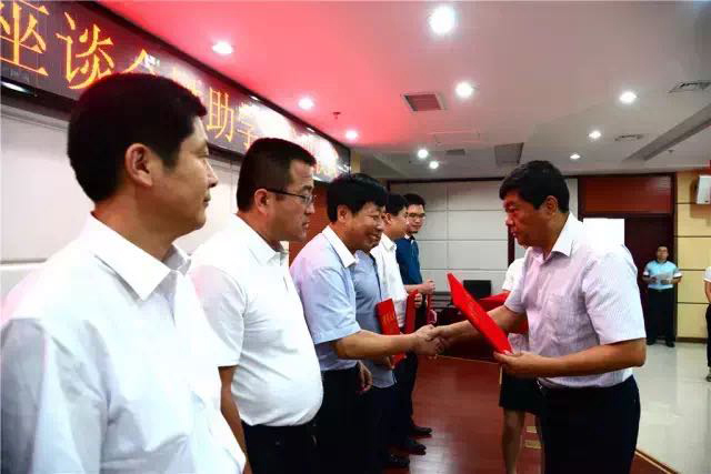 乐陵市委书记曲锋为爱心企业家代表颁发荣誉证书
