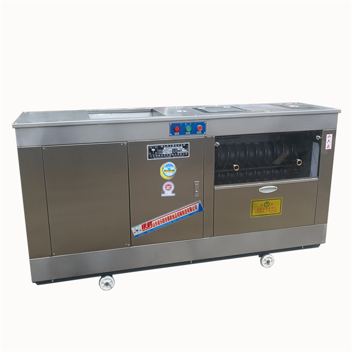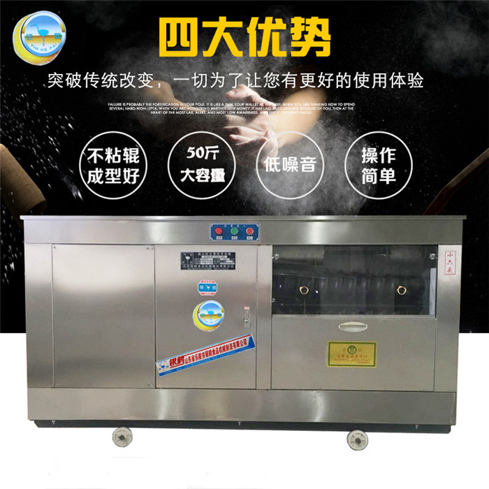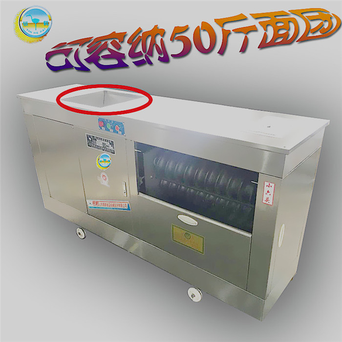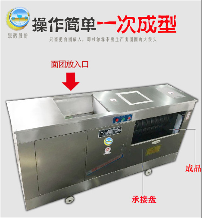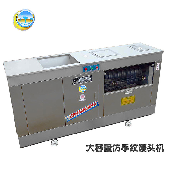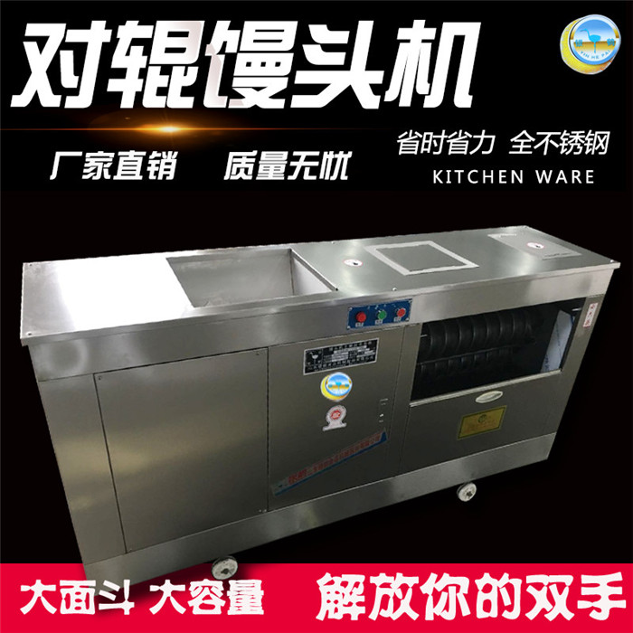 大容量馒头机是我公司在原对辊馒头机的基础上研制开发的一种新产品,它能将和好的40至50斤的面团通过输送、剪切、滚圆的方法加工成圆球状馒头,真正实现了省时省力省人工费用。本机加工制作好的馒头成型好,效率高,操作方便,清理简单,馒头大小可调,是一种理想的馒头加工设备。
