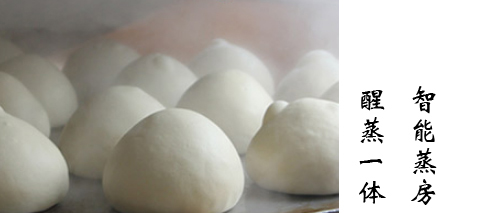 将成型的馒头坯置于蒸车托盘里,将蒸车推入蒸房,控制湿度、温度、时间于一体,保证醒发、蒸制自动化。